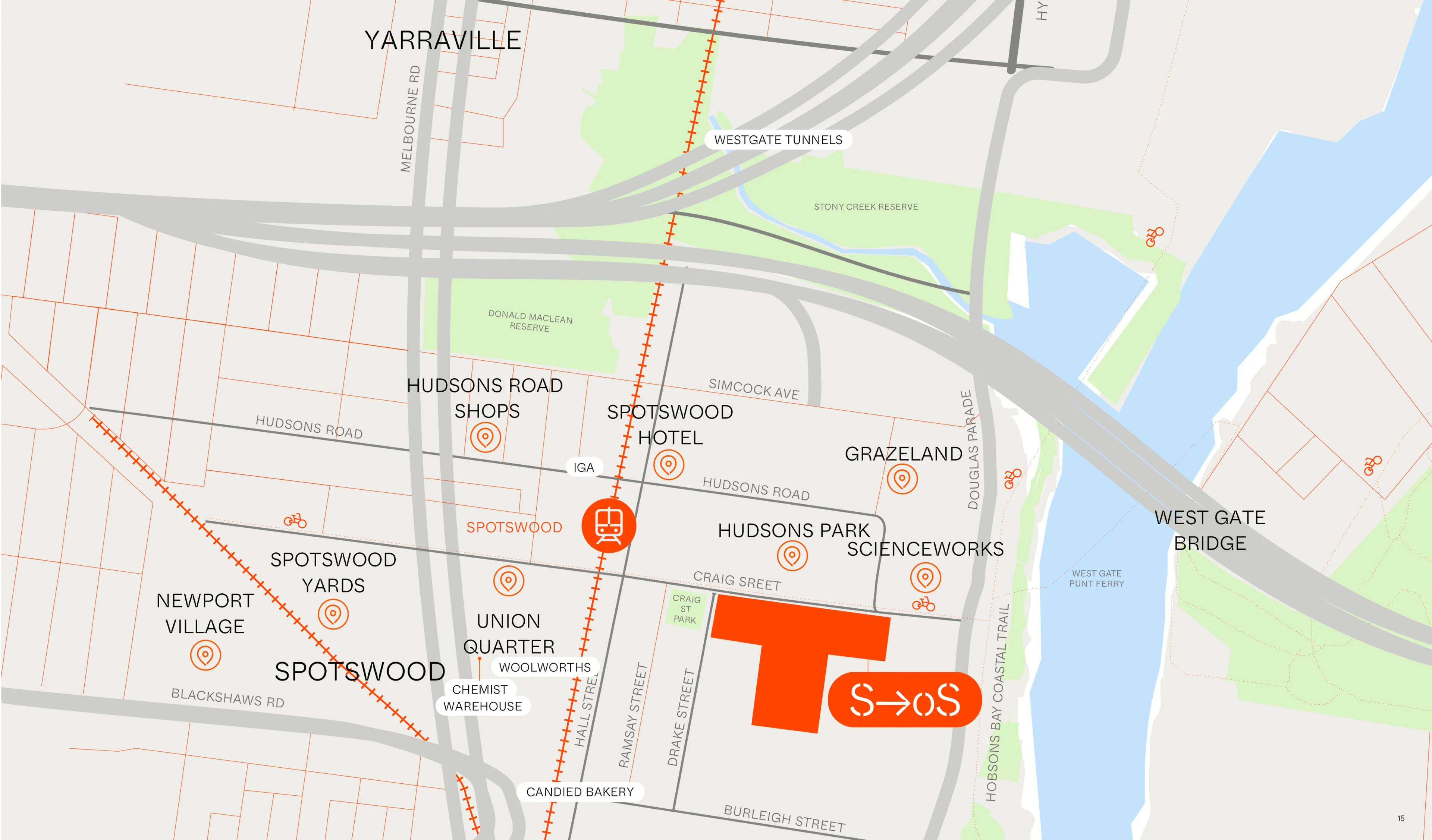 At Sheds of Spotswood, location is everything. Positioned directly opposite local landmark Scienceworks, the site sits just 6km from Melbourne’s CBD, 3km from the Port of Melbourne, and a short 400m from the new West gate Tunnel.