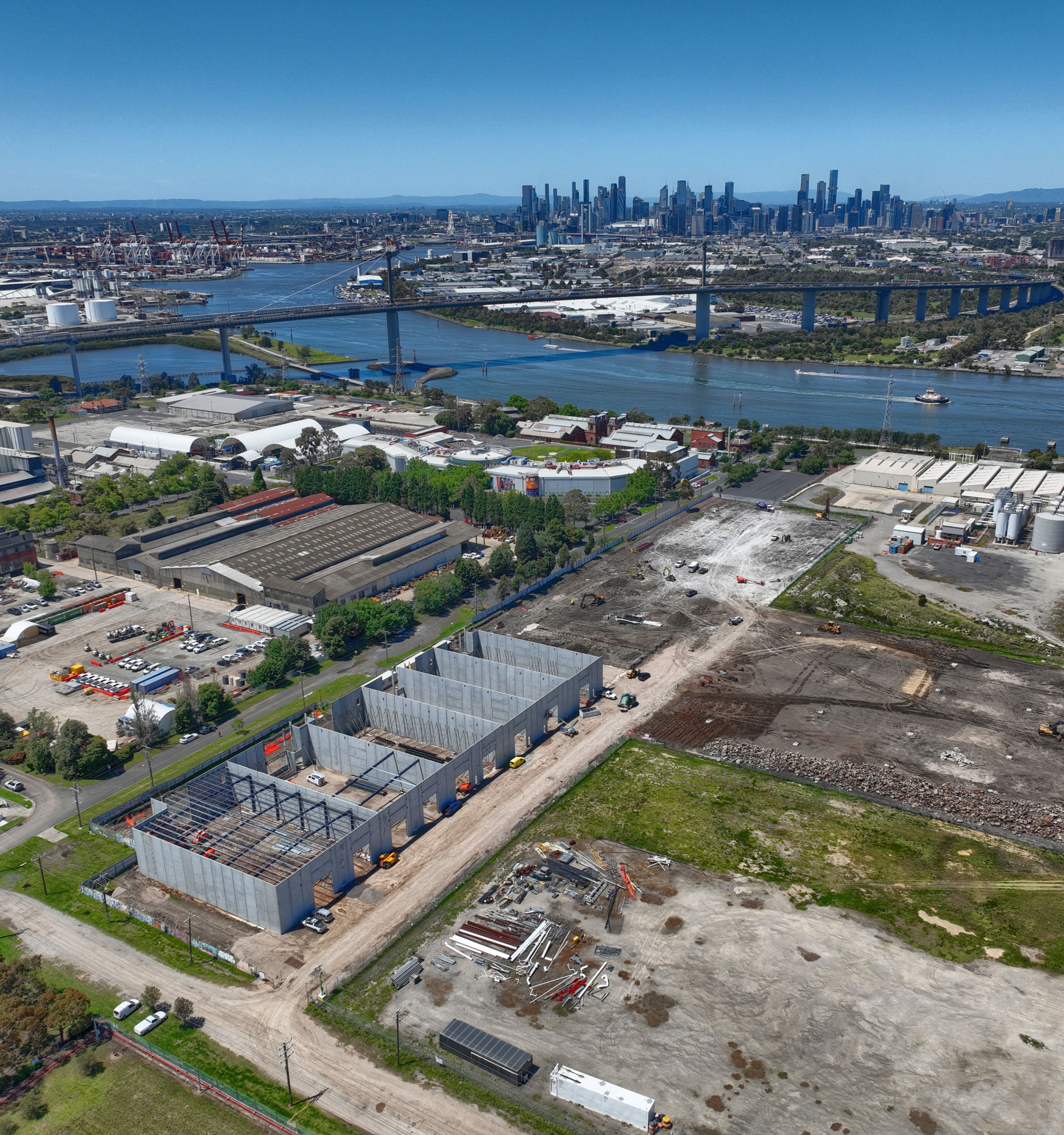 Since commencing works in August 2025, C3 have made substantial progress with panels now erected and roofing underway to Units 1-7. This marks a major milestone in the delivery of this premium industrial estate, enabling prospective tenants to see, touch and experience. These larger warehouses up to ~1,300 sqm will be available for lease, offering businesses the opportunity to capitalise on the newly opened West Gate Tunnel and leverage off all that this city fringe hub has to offer.